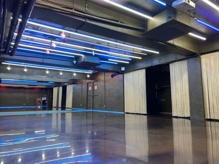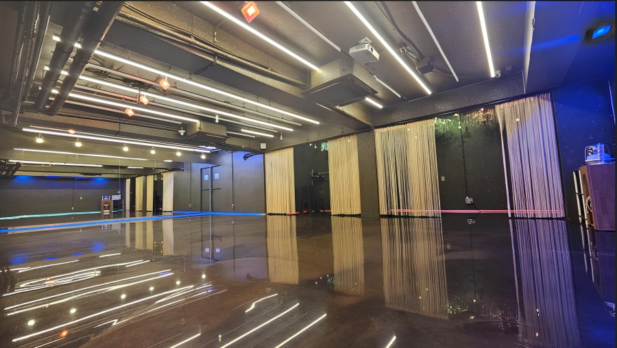 홍대입구역에서 도보 2분 거리에 있는 이 연습실은 35평 단독홀에 가로 7m, 높이 2.8m의 대형 거울이 설치된 곳이에요. 내부 화장실도 있고, 음향 시설도 갖춰져 있어서 댄스는 물론 연기 리딩, 퍼포먼스 준비 등 다양한 목적으로 사용할 수 있어요.